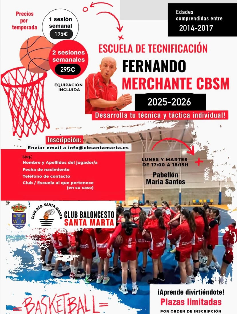 arranca su tercera temporada llevándose a cabo en el Club Baloncesto Santa Marta. Esta actividad pretende entrenar a los jugadores/as de forma individualizada y especializada para trabajar aquellos aspectos a los que es difícil llegar en los entrenamientos de equipo y las clases de educación física por el alto número de niños, la cantidad de contenidos y la falta de tiempo que se suele tener en colegios y escuelas deportivas de estas edades. Fernando Merchante, entrenador superior con una dilatada carrera como profesional del baloncesto, es el entrenador responsable de la actividad y siempre está acompañado de un ayudante en sus sesiones.